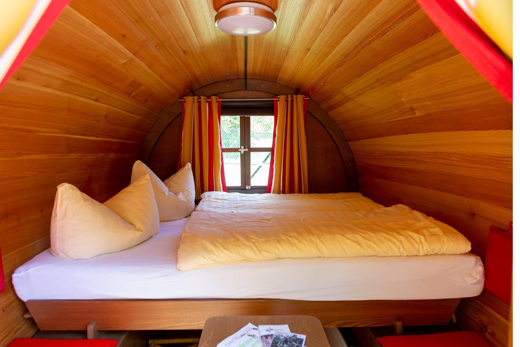 Ein besonderes Highlight auf dem Gelände sind die sogenannten Schlummerfässer. Diese gemütlichen Holzfässer bieten eine originelle Übernachtungsmöglichkeit direkt auf dem Sportgelände und sind vor allem bei Wanderern, Radfahrern und Outdoor-Fans sehr beliebt. Trotz ihrer kompakten Größe sind die Schlummerfässer überraschend komfortabel und bieten einen geschützten, gemütlichen Schlafplatz mitten in der Natur. Wer hier übernachtet, erlebt eine besondere Mischung aus Campinggefühl und Komfort.