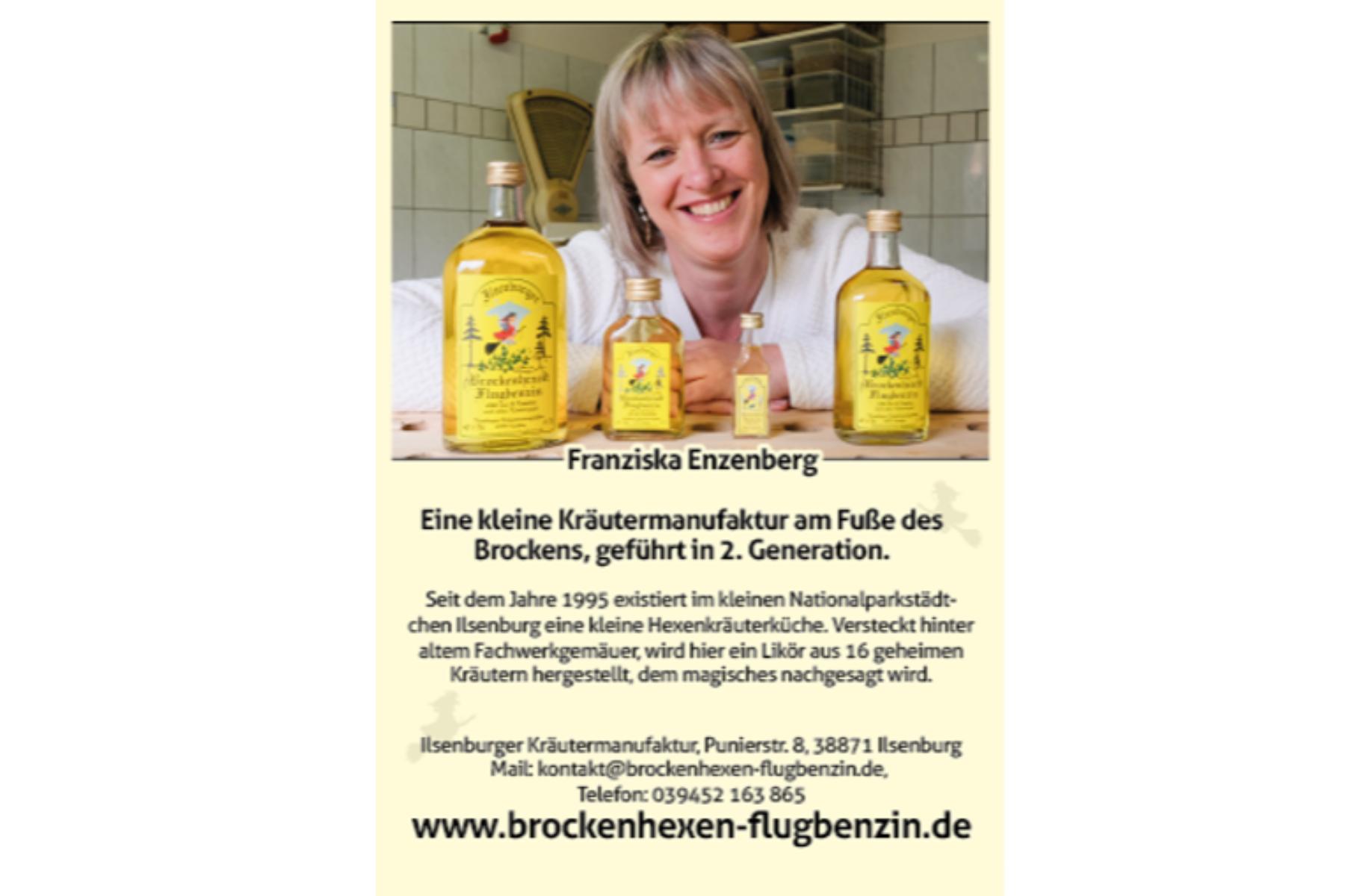 Seit 1995 fliegen alle Hexen mit unserem Ilsenburger Brockenhexen Flugbenzin zum Brocken. Der Startschuss fiel zur Walpurgisfeier 1995 in Ilsenburg. Seitdem wird im Nationalparkörtchen Ilsenburg in einer kleinen Hexenkräuterküche, versteckt hinter altem Fachwerkgemäuer, aus 16 geheimen Kräutern unser Kräuterlikör hergestellt.