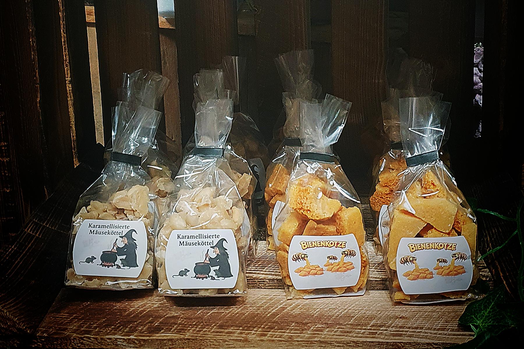 namen zoals trollen snot, bijen braaksel, gekarameliseerde muizenkeutels of spin suikerspin.