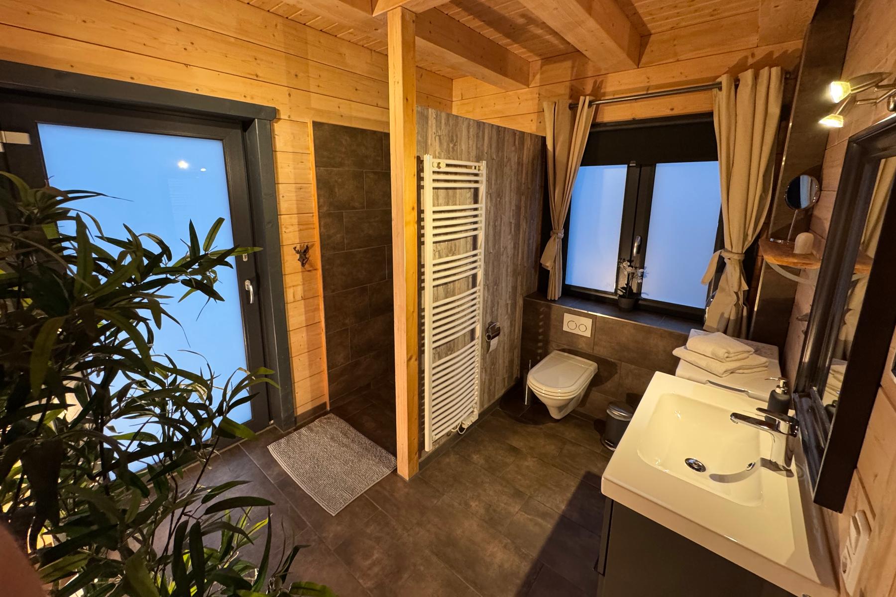 Wszystkie nasze 5-gwiazdkowe domy wakacyjne są wykonane z litych bali w stylu alpejskim stylu chalet, każdy z sauną z bali i piecem opalanym drewnem a także bezpłatny WLAN, wizualnie i technicznie na bieżąco. Nasze Nasze domy są urządzone w nowoczesnym, ale przytulnym stylu. Typowy charakter domków z bali zapewnia ciepłą i przytulną atmosferę. przyjemna atmosfera.
