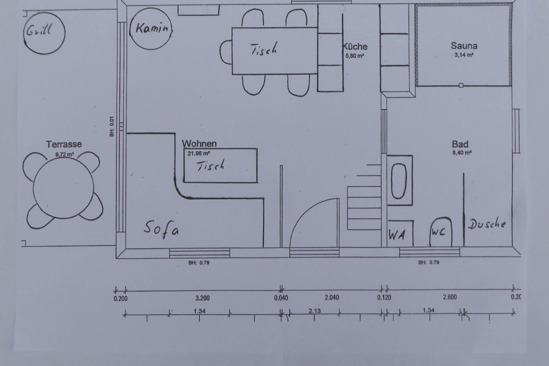 Nasze domki mają powierzchnię ok. 110 metrów kwadratowych, a nasze nieco mniejsze "chatki" mają powierzchnię ok. 70 metrów kwadratowych. metrów kwadratowych. Wszystkie domy mają duże panoramiczne okna, które wychodzą na górę góry (Bocksberg).