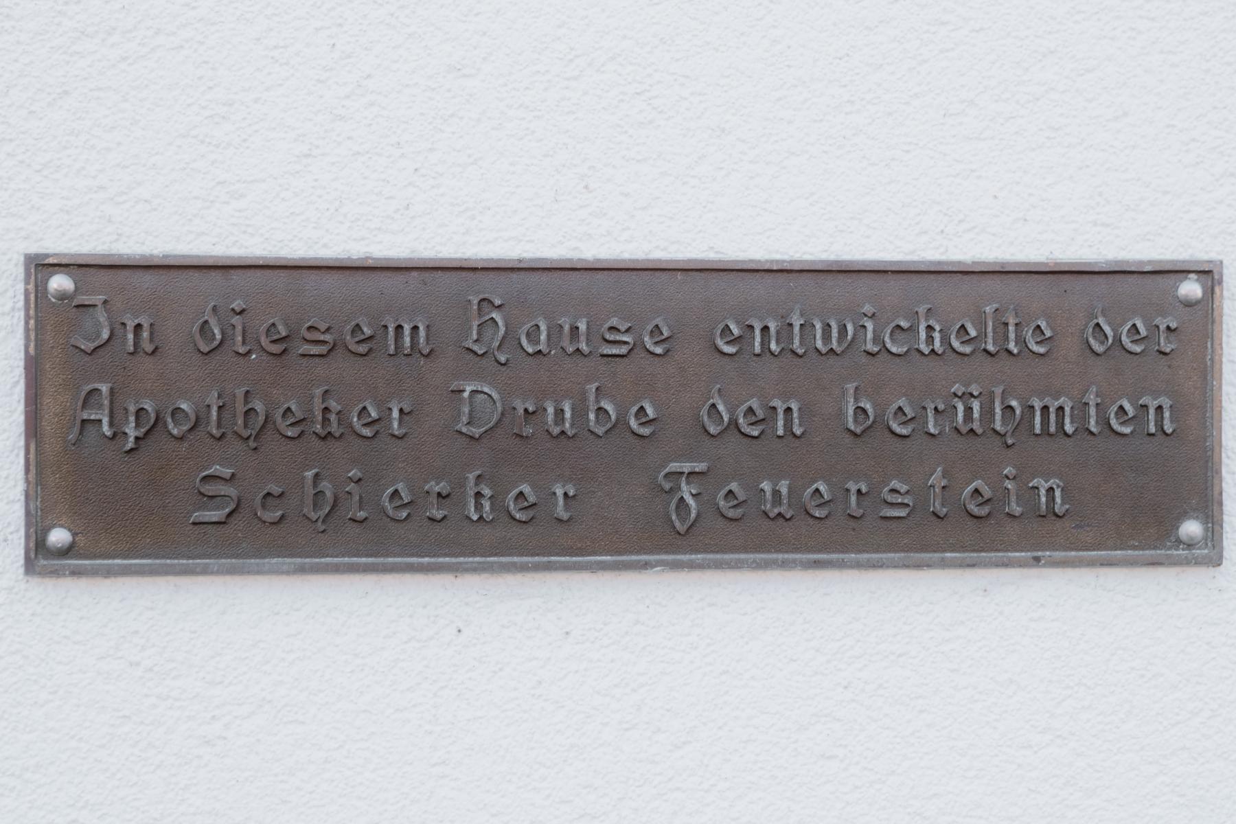 Eski eczane, Schierker Feuerstein'ın tarihi merkezi ve bitkisel bitterlerin tarihi için önemli bir yerdir. Bir zamanlar Willy Drube'ye ait olan bu Schierker Eczanesi'nde 1908 yılında enfes bir bitkisel bitter yaratılmıştır. Eski eczane sadece bir üretim yeri değil, aynı zamanda onlarca yıllık ustalık ve tutkunun da bir kanıtıdır.