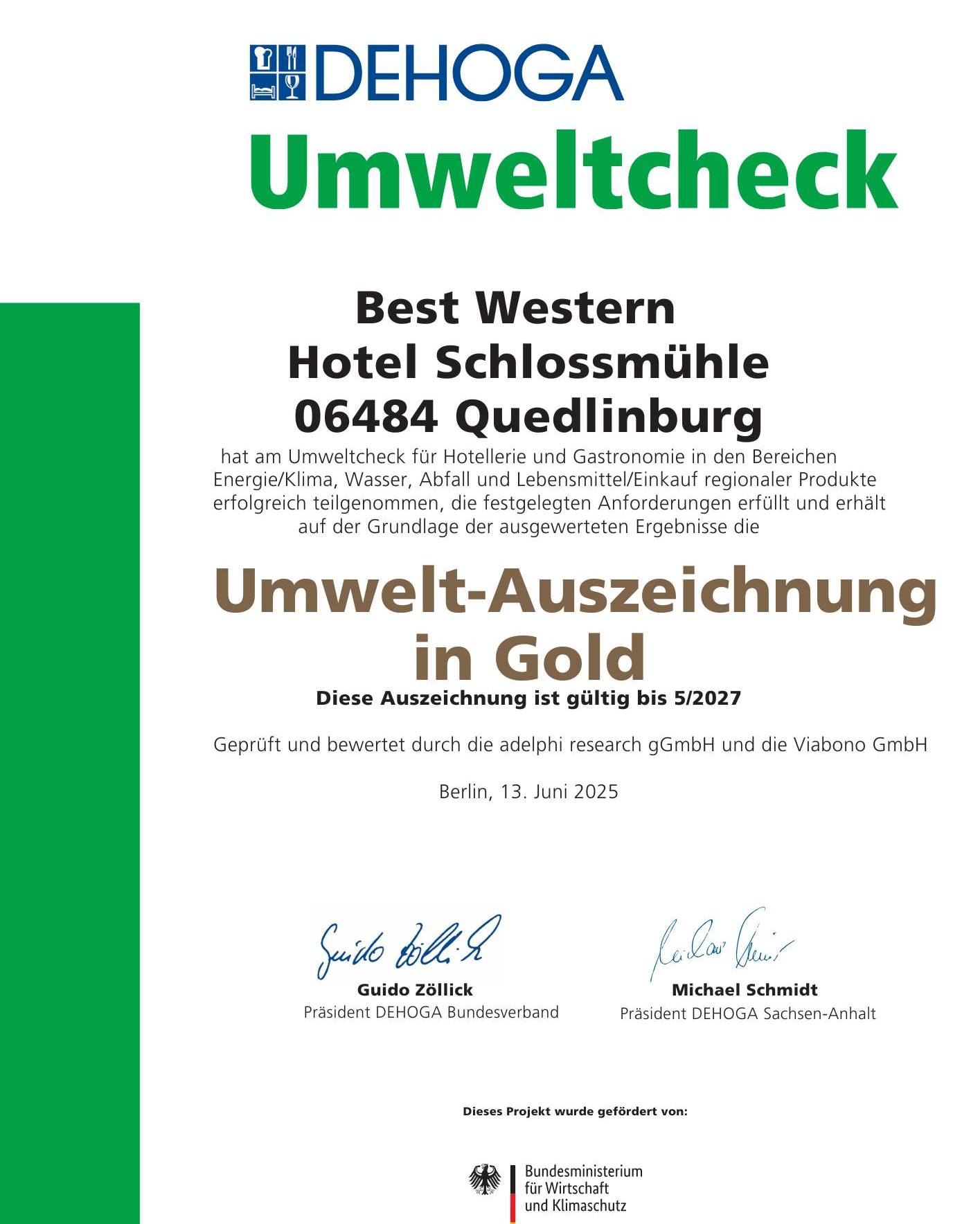 Якщо ви хочете відкрити для себе природну гостинність Гарцу в нашому ресторані або склепінчастому підвалі, провести великі чи малі конференції та урочистості або дослідити історичний Кведлінбург з групою - що б ви не вирішили з-поміж безлічі варіантів та пропозицій нашого готелю, ви обов'язково зробите правильний вибір для свого незабутнього перебування в нашому місті разом з готелем Schlossmühle.