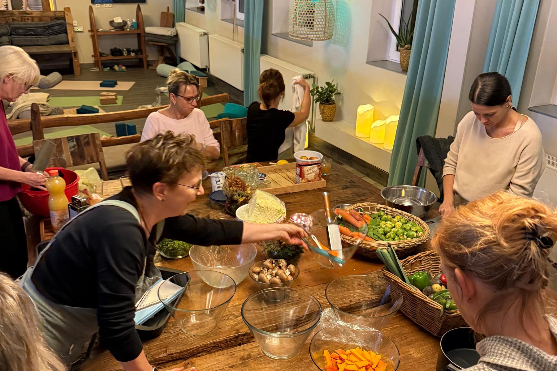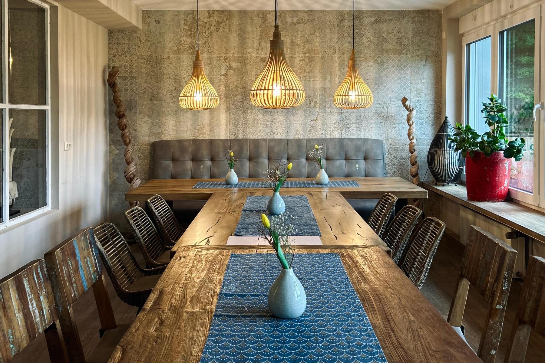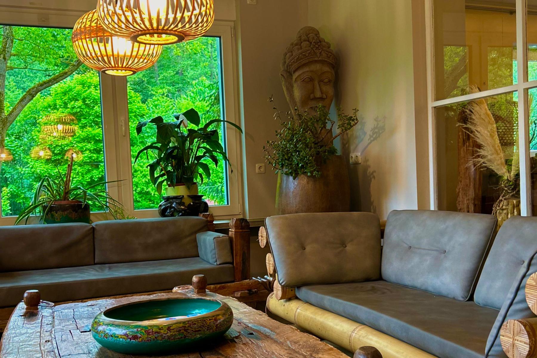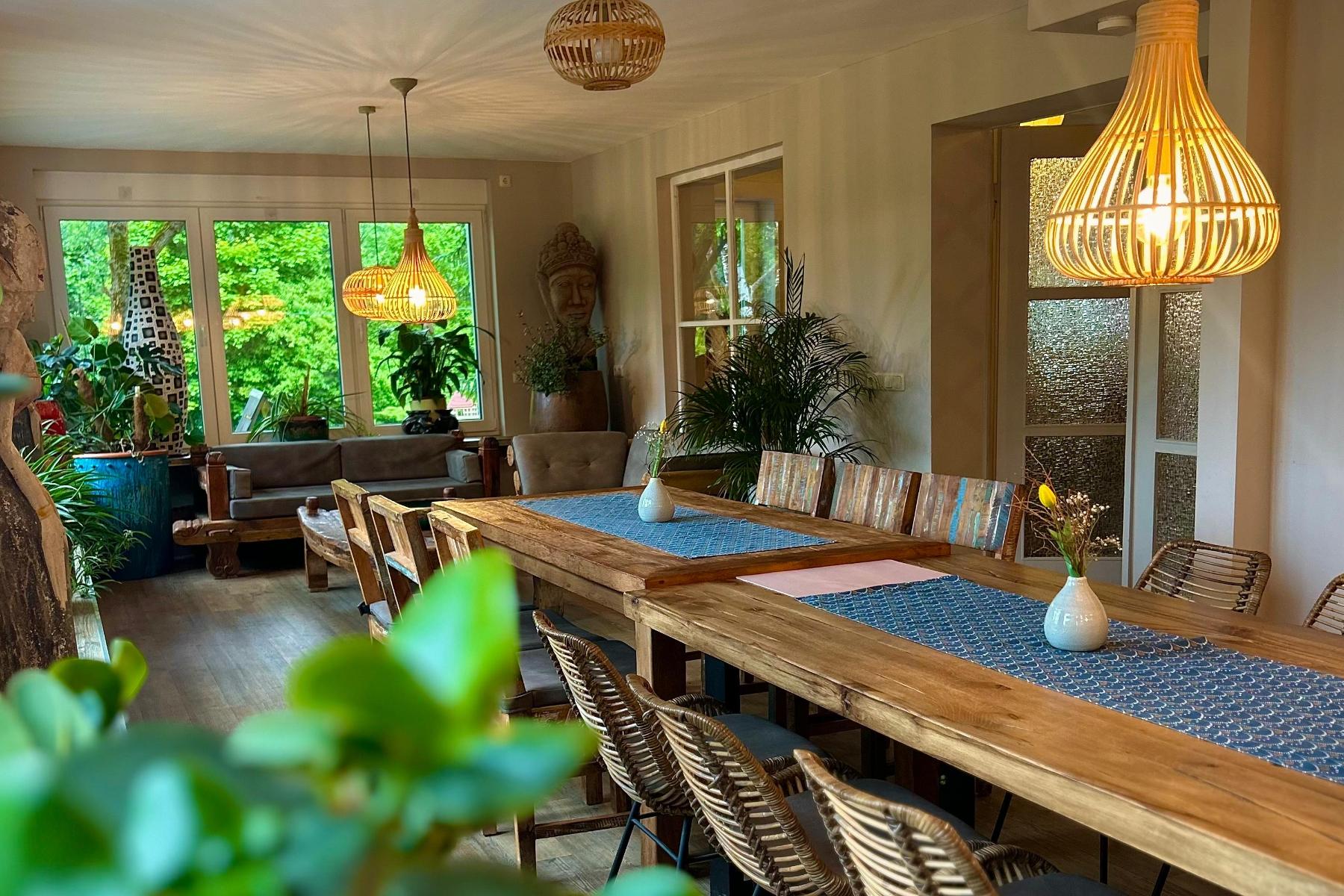 Ein großer Garten, gemütliche Aufenthaltsbereiche, Wintergarten, Feuerstellen und vielfältige Rückzugsorte laden dazu ein, den Alltag hinter sich zu lassen. Ob als Paar, Familie, Gruppe oder für Workshops und Retreats – hier findet jeder seinen Platz.