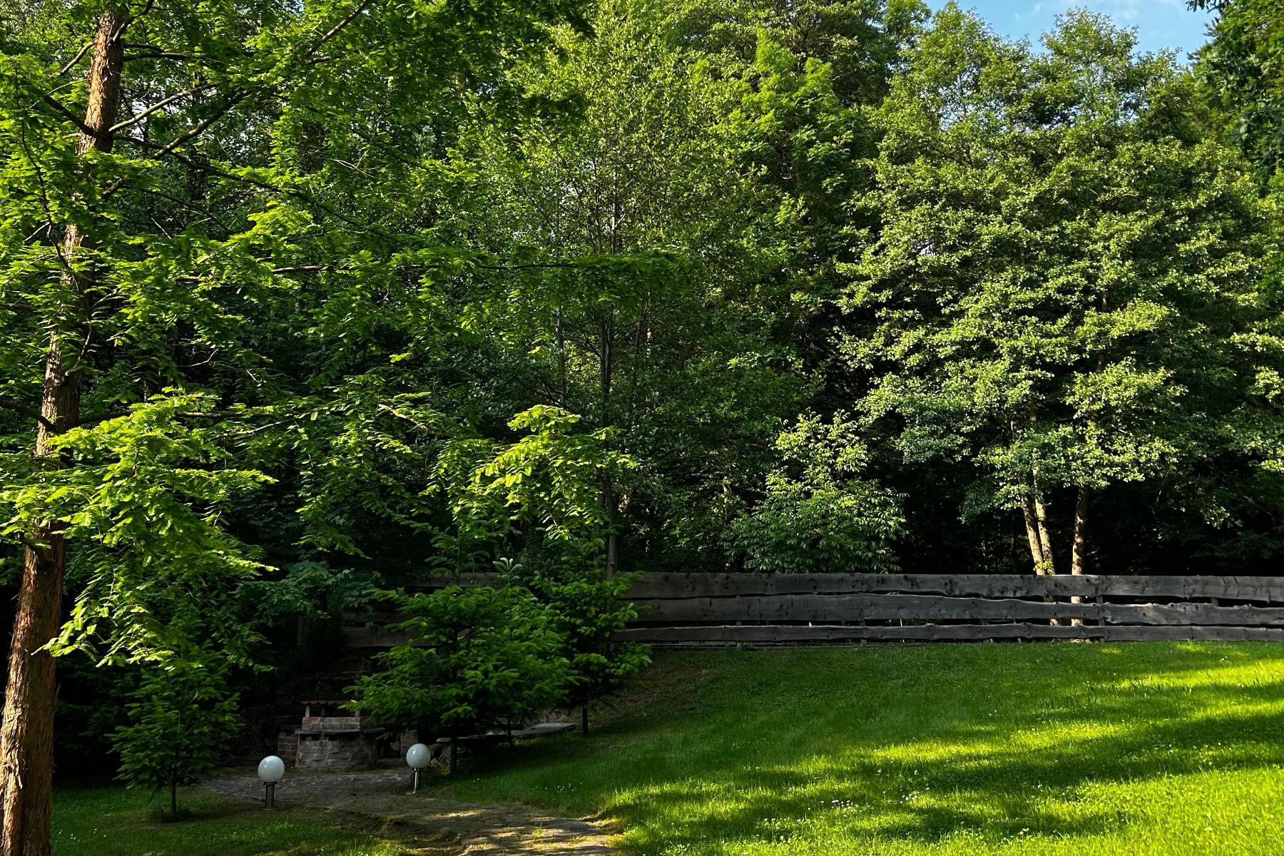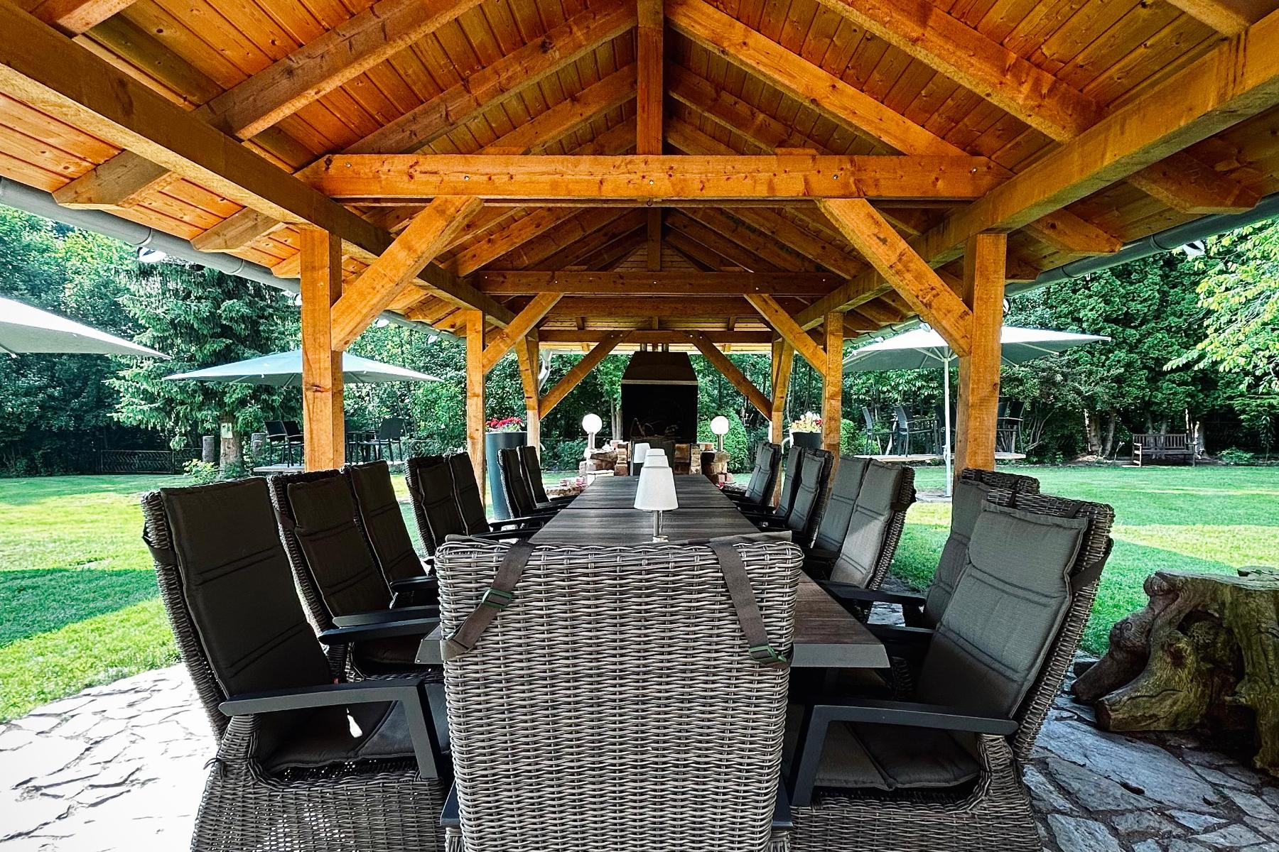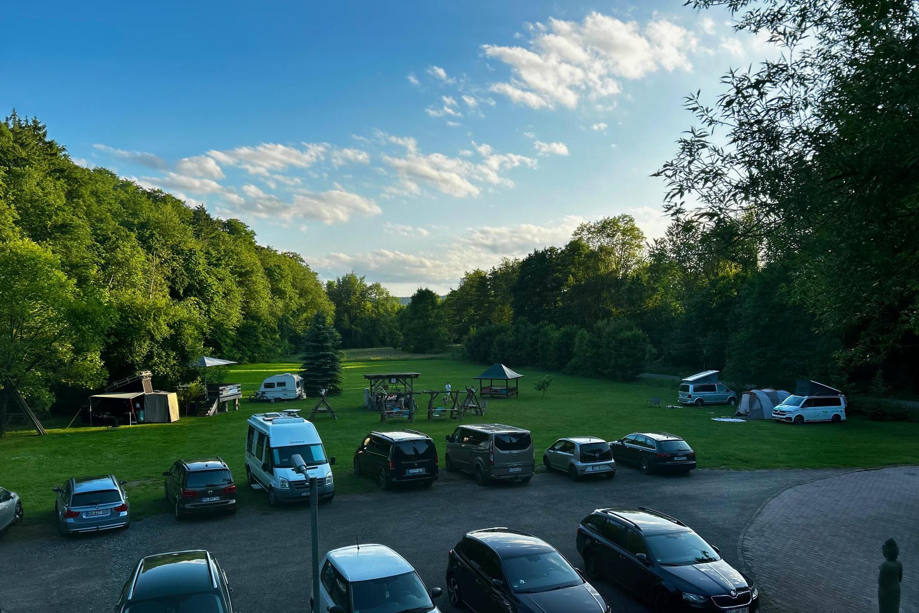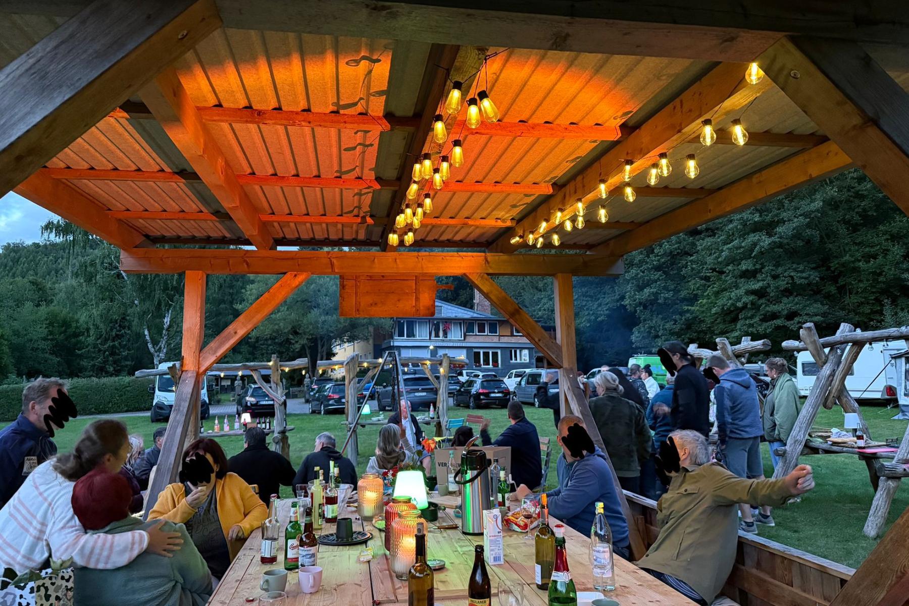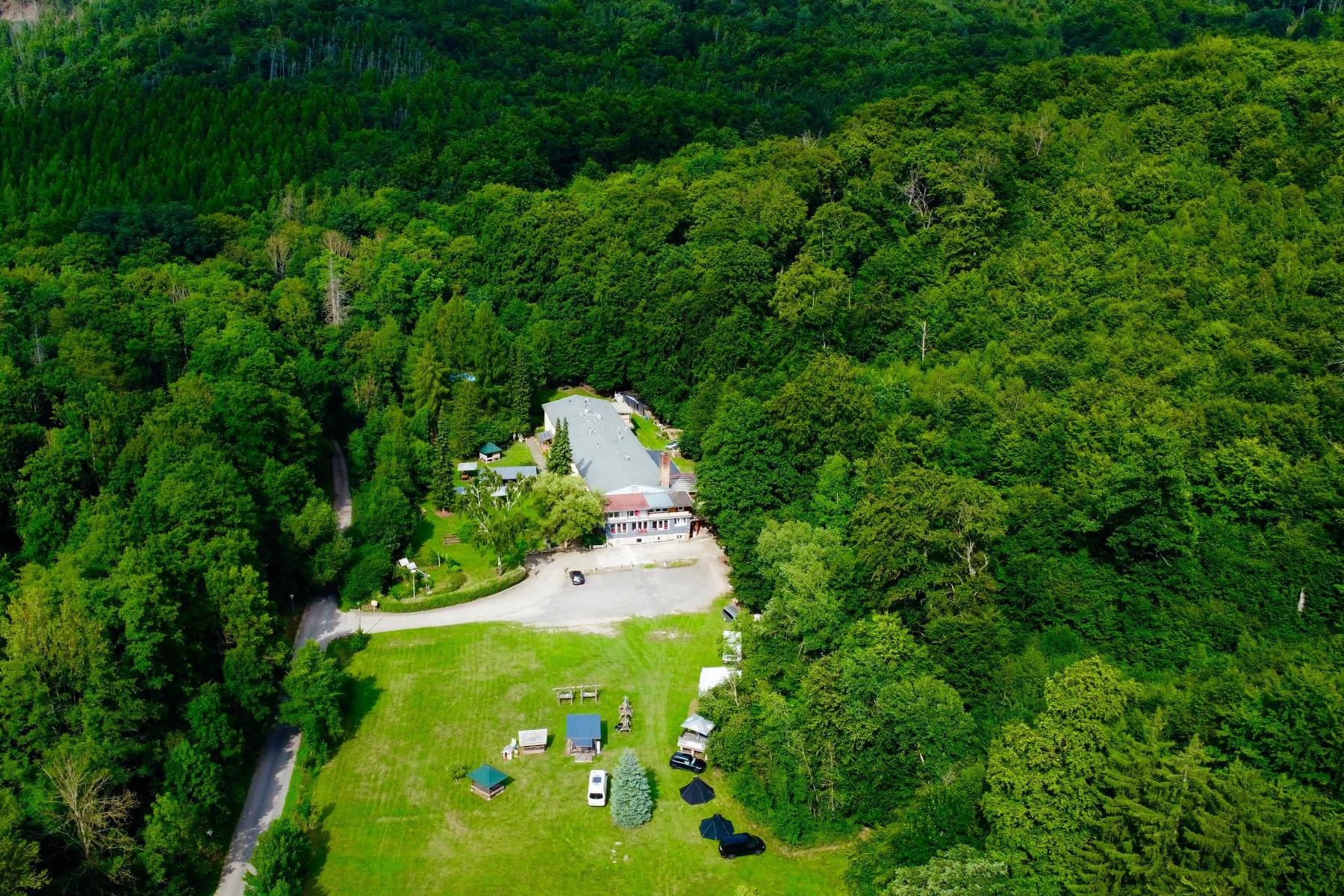 Das großzügige Außengelände bietet viel Platz für gemeinsame Zeit im Freien. Feuerstellen, Grillmöglichkeiten und naturnahe Sitzplätze schaffen eine entspannte Atmosphäre für Gespräche, Lagerfeuerabende oder kreative Pausen. Zusätzlich stehen naturnahe Campingmöglichkeiten zur Verfügung, wodurch sich das Haus flexibel an unterschiedliche Gruppengrößen anpassen lässt.