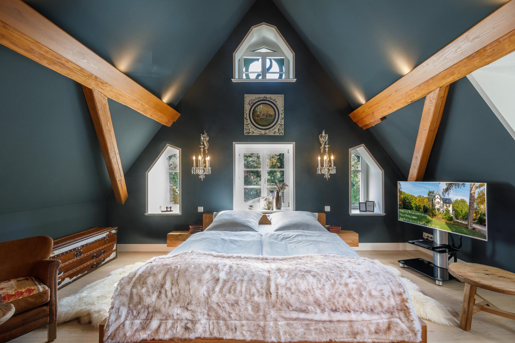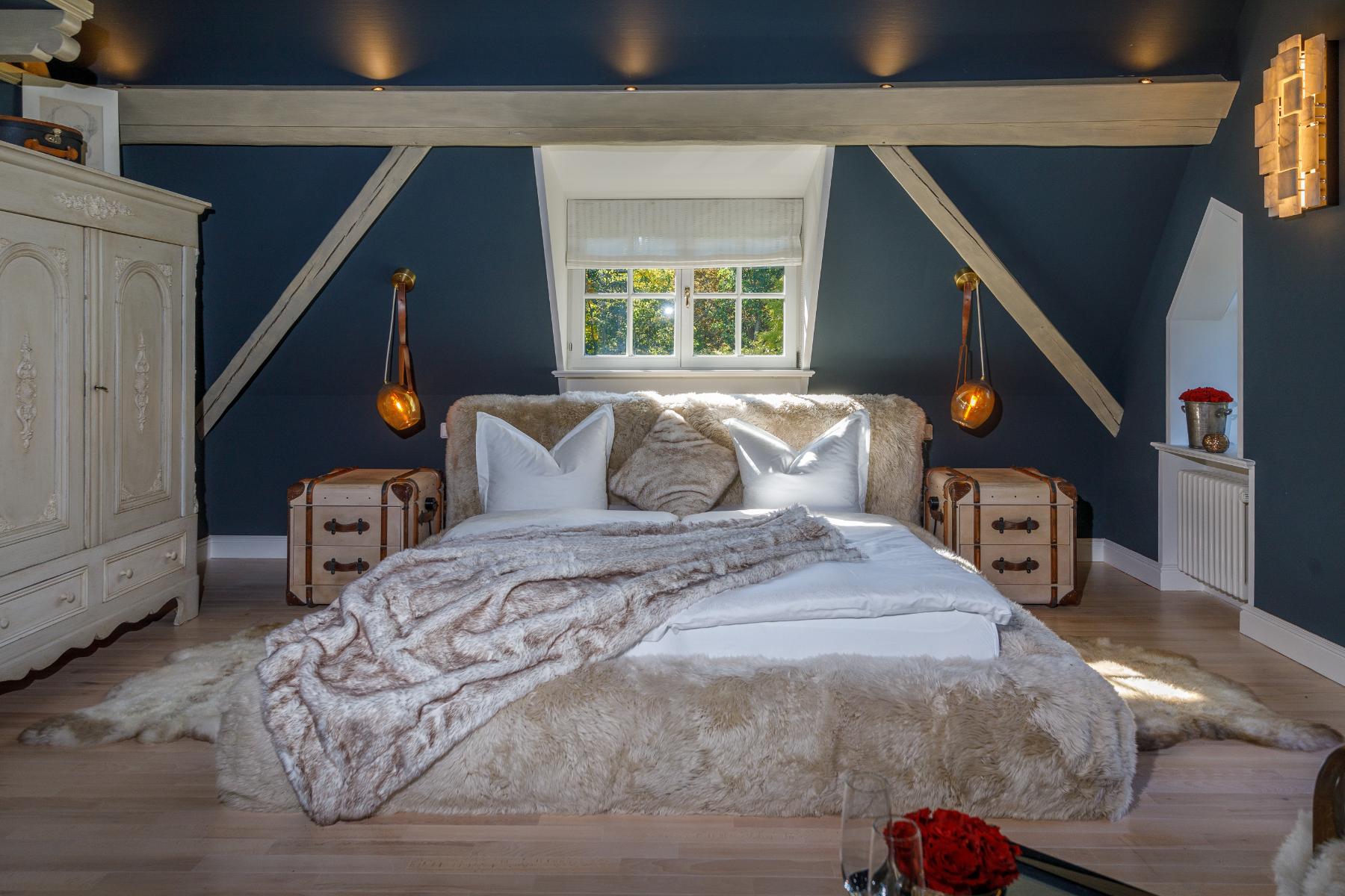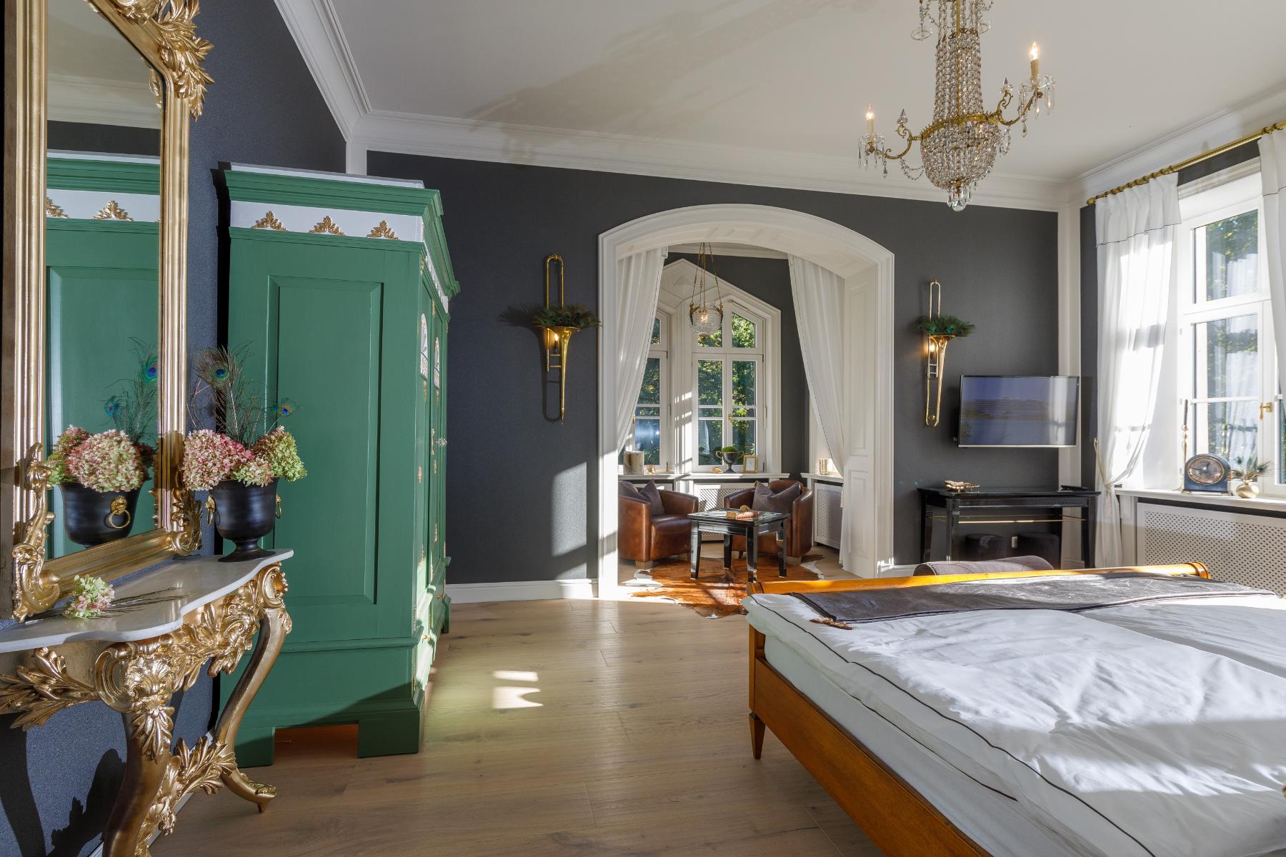 Die historische Villa wurde mit viel Liebe zum Detail modernisiert und bietet heute großzügige, individuell gestaltete Suiten für anspruchsvolle Gäste. Jede Suite überzeugt durch stilvolles Interieur, komfortable Betten, moderne Bäder und hochwertige Materialien. Große Fensterflächen sorgen für lichtdurchflutete Räume und bieten einen herrlichen Blick in die grüne Parkanlage. Damit ist die Villa Ottilienruh nicht nur ein Designhotel im Harz, sondern ein exklusiver Rückzugsort für Paare, Ruhesuchende und Genießer.