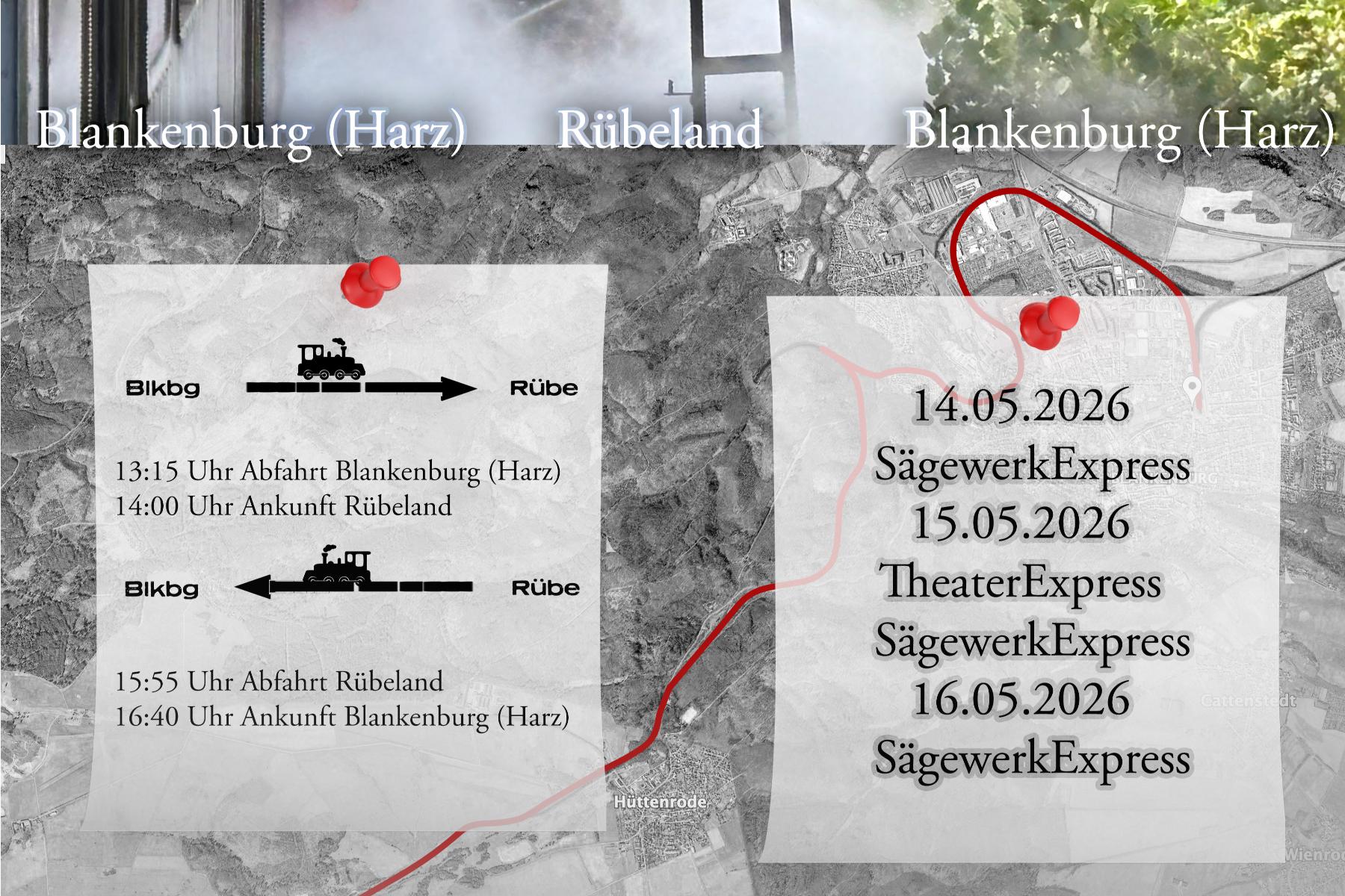 Dampflok 95 027 trifft Sägewerk!Tag der offenen Tür im Schausägewerk !Gastgeber wird die „Tischlerei & Schausägewerk Ehrt” in Kooperation mit der AFG mbH Harz sein.Ab 03.10.2024 bis Sonntag, den 06.10.2024 findet jeweils in der Zeit von 11.00-16.00 Uhr der „ Tag des offenen Schausägewerks” statt.Abfahrt Blankenburg (Harz) 13:15 UhrAnkunft Rübeland 13:55 UhrAbfahrt Rübeland 15:55 UhrAnkunft Blankenburg ( Harz ) 16:40 UhrAlso nichts wie ran ans HOLZ. Erleben Sie, wie unsere Vorfahren die Holzstämme bearbeitet haben. Zusehen mit der alten Sägewerks- und Holzbearbeitungstechnik!Die Arbeitsgemeinschft-Rübelandbahn bietet dies als KomplettPaket für unsere Gäste an !Es ist wieder soweit, erleben Sie eine Fahrt nach Rübeland der besonderen Art. Begeben Sie sich zusammen mit Ihren Lieben am Samstag als auch am Sonntag auf eine romantische Dampfzugreise.Dieses Mal 4 Tage nacheinander, ab den 03.010.2024 bis Sonntag, den 04.10.2024 alle begeisterten Technikfreunde und die, die es werden möchten recht herzlich eingeladeneinen kostenlosen Transfer vom Bahnhof Rübeland zum „Schausägewerk Ehrt” in Elbingerode zu nutzen.Dort können Sie noch alte Sägegatter in Funktion erleben.Vorort gibt es auch einen Sonderstempel der Harzer Wandernadel!Wir empfehlen eine Reservierung per E-Mail oder telefonisch über www.arbeitsgemeinschaft-ruebelandbahn.de.Für Ihren Aufenthalt in Rübeland empfehlen wir dort einen Besuch in der Baumannshöhle, Natürlich steht die 95 6676 wieder vor dem Lokschuppen zur Besichtigung